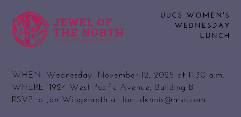 Please RSVP to Jan Wingenroth at Jan_dennis@msn.com so we can reserve a big enough table. If you haven’t had lunch with the UU women before or even if you have consider giving us and/or this new restaurant a try